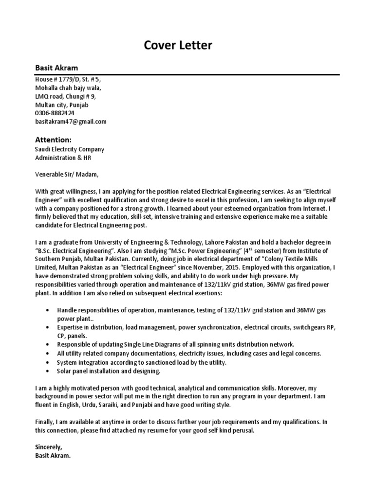 Application Letter For Electrical Engineer Fresh Graduate Example